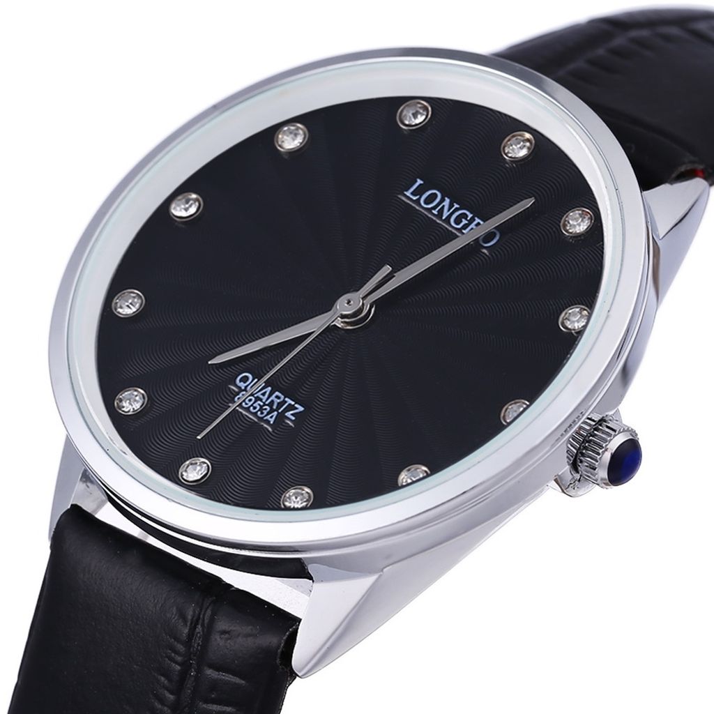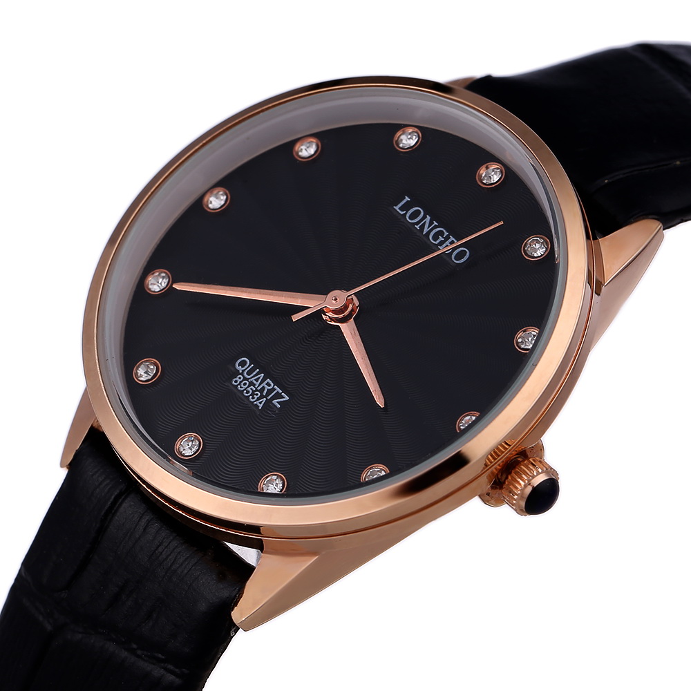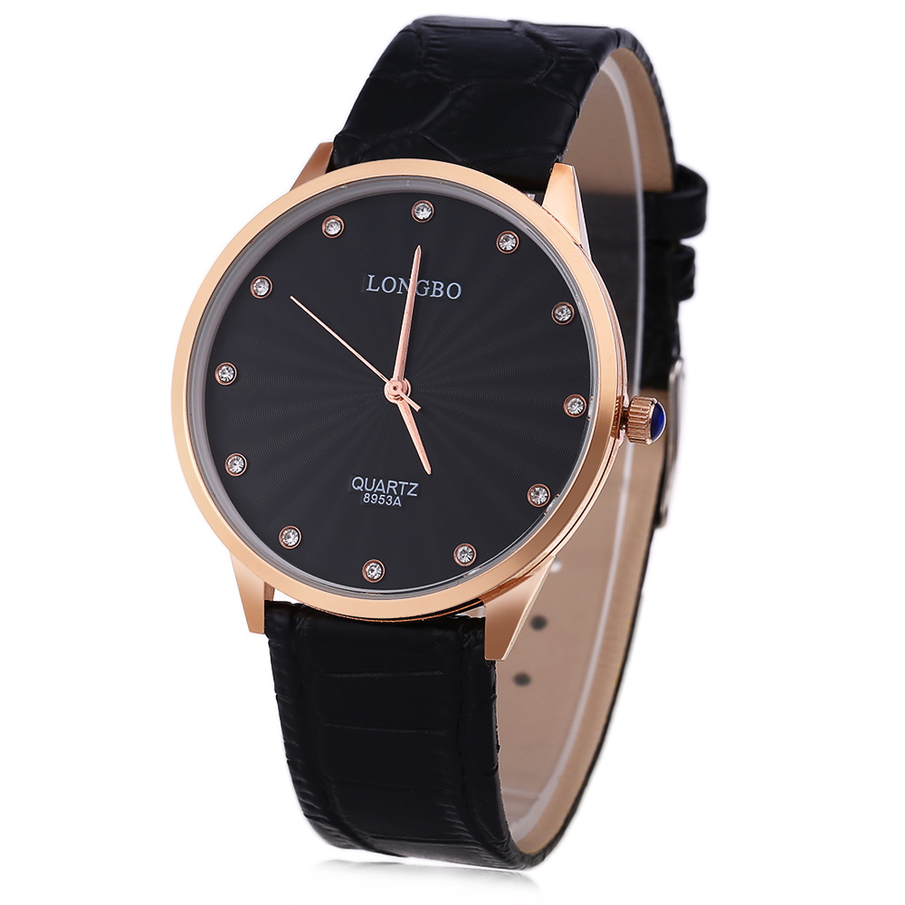 LONGBO 8953A WOMEN QUARTZ WATCH 30M WATER RESISTANCE LEATHER STRAP WRISTWATCH ARTIFICIAL DIAMOND DISPLAY DIAL