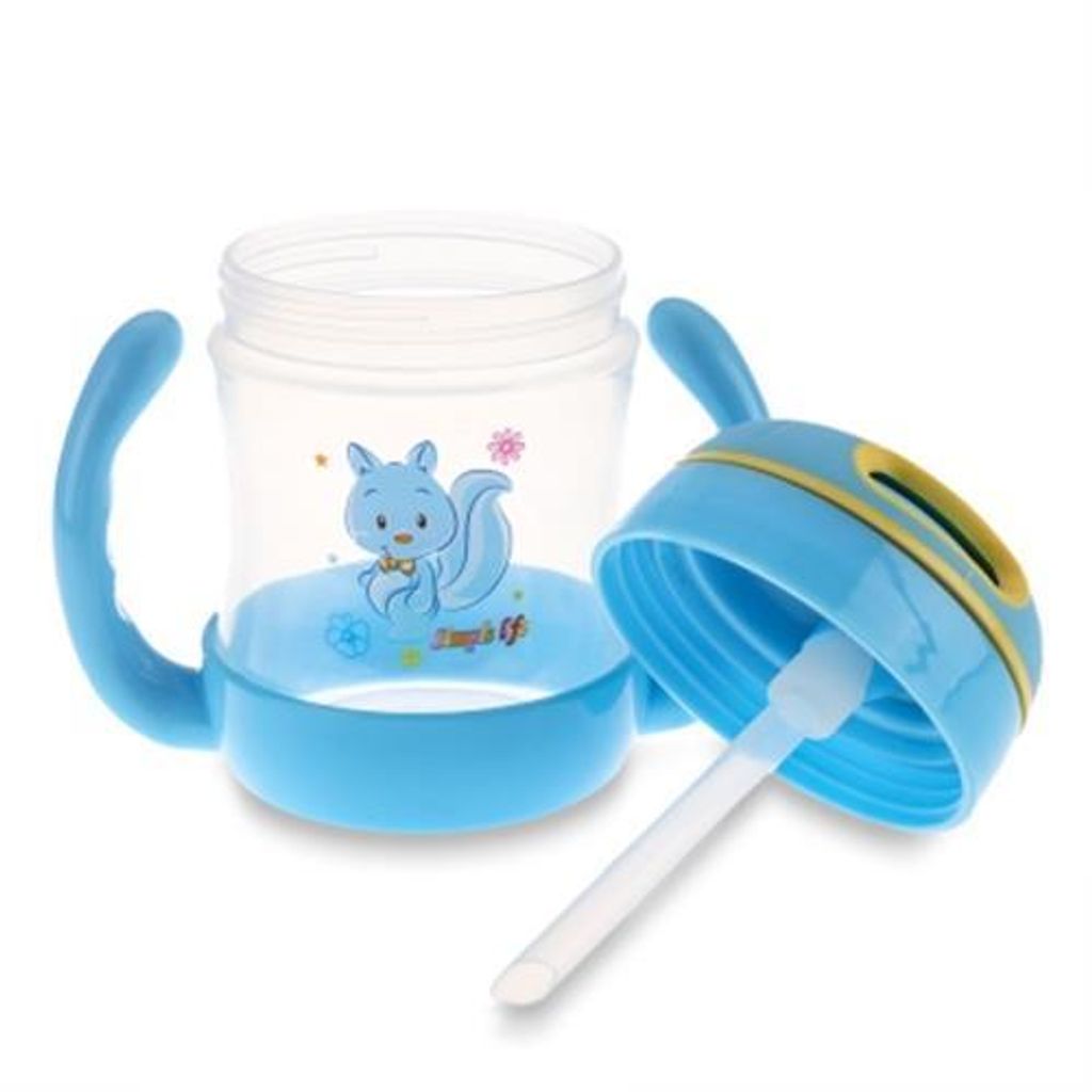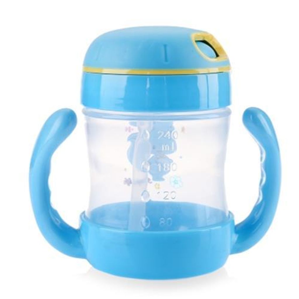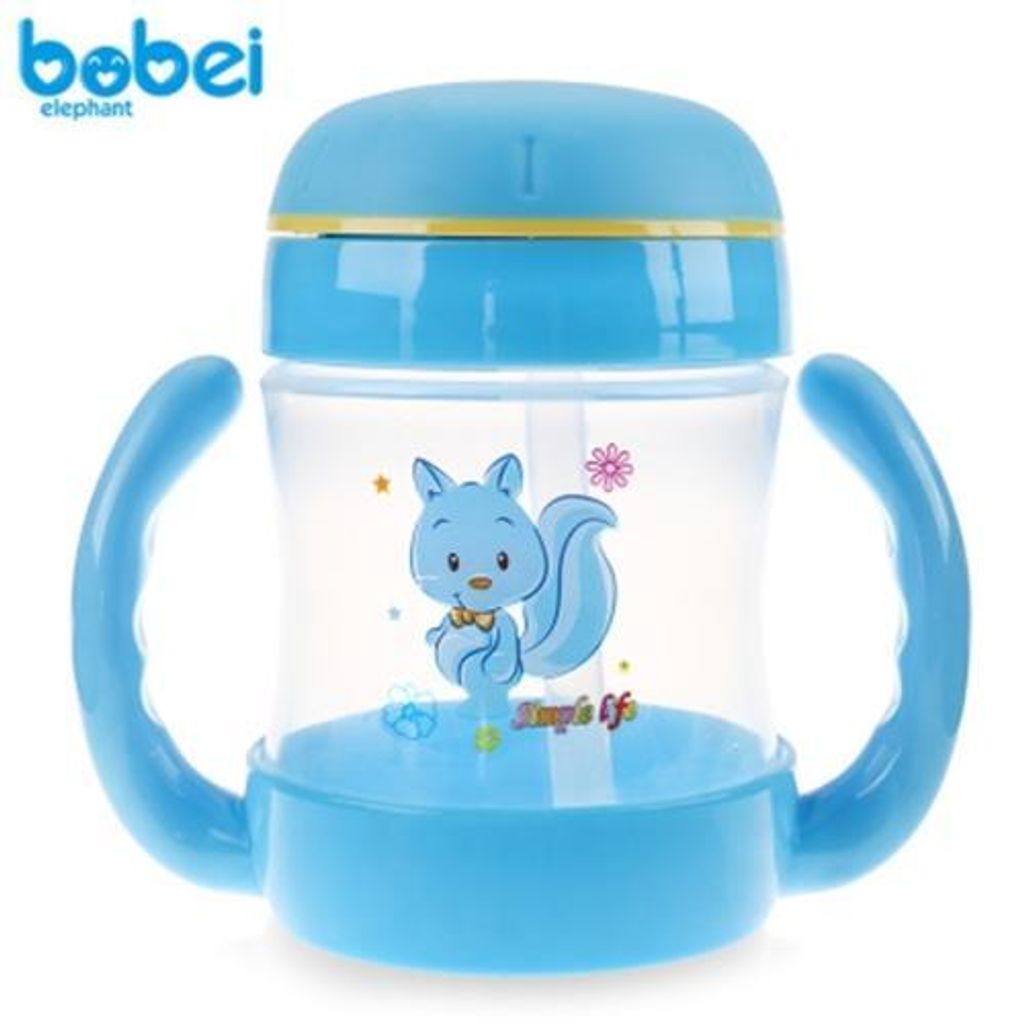 BOBEI ELEPHANT 240ML CARTOON STRAW BOTTLE TRAINING CUP FOR BABY (BLUE)