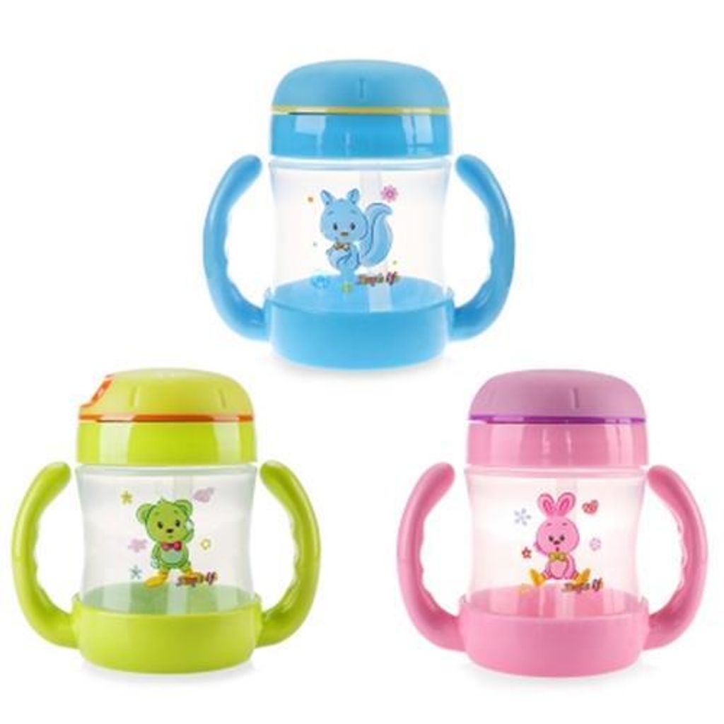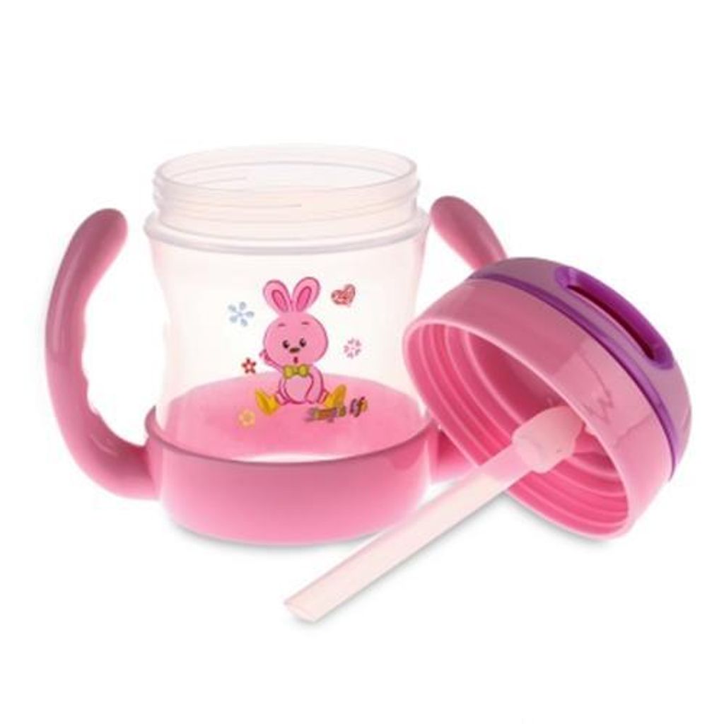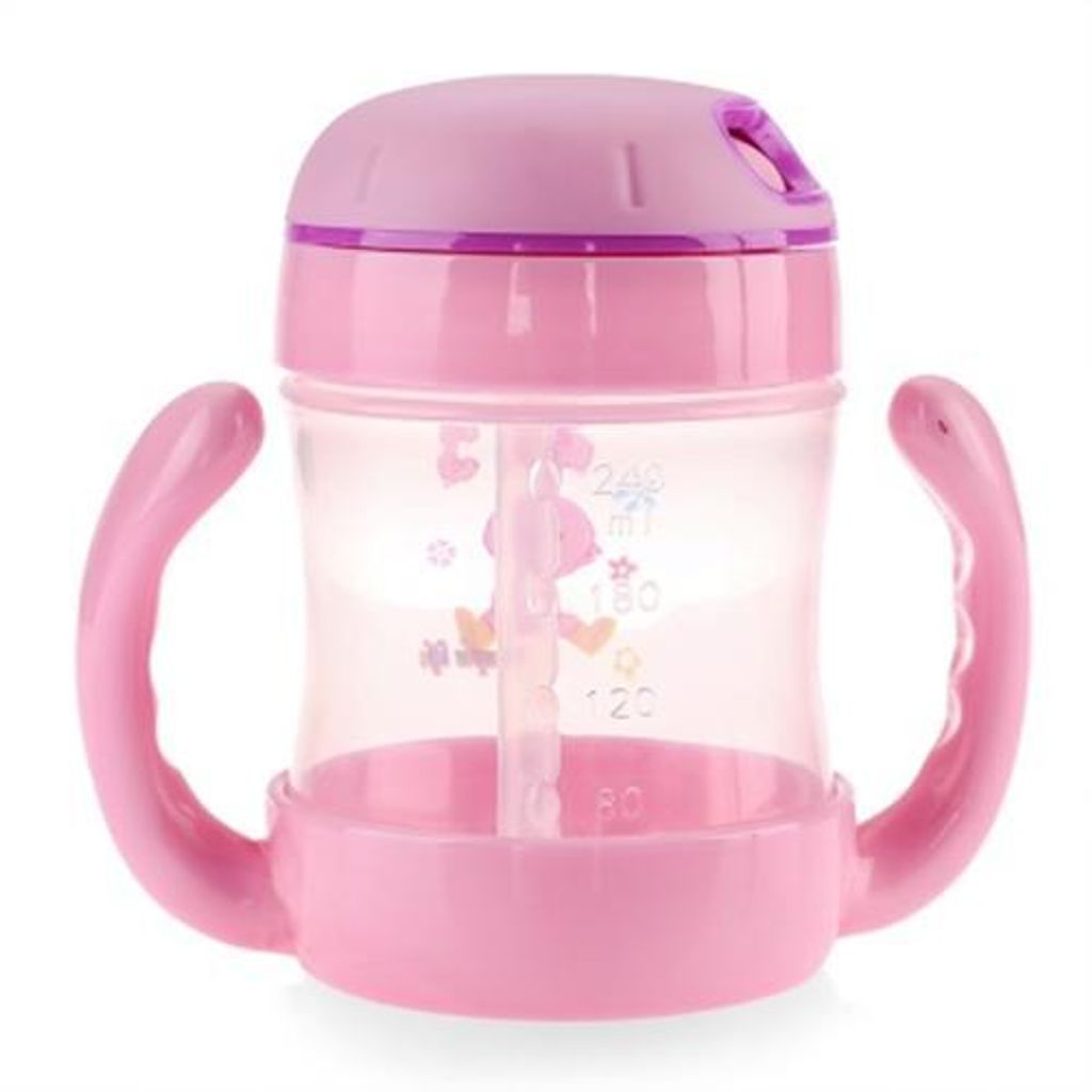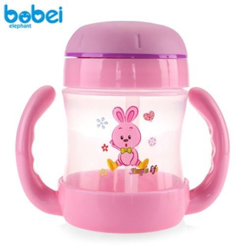 BOBEI ELEPHANT 240ML CARTOON STRAW BOTTLE TRAINING CUP FOR BABY (PINK)